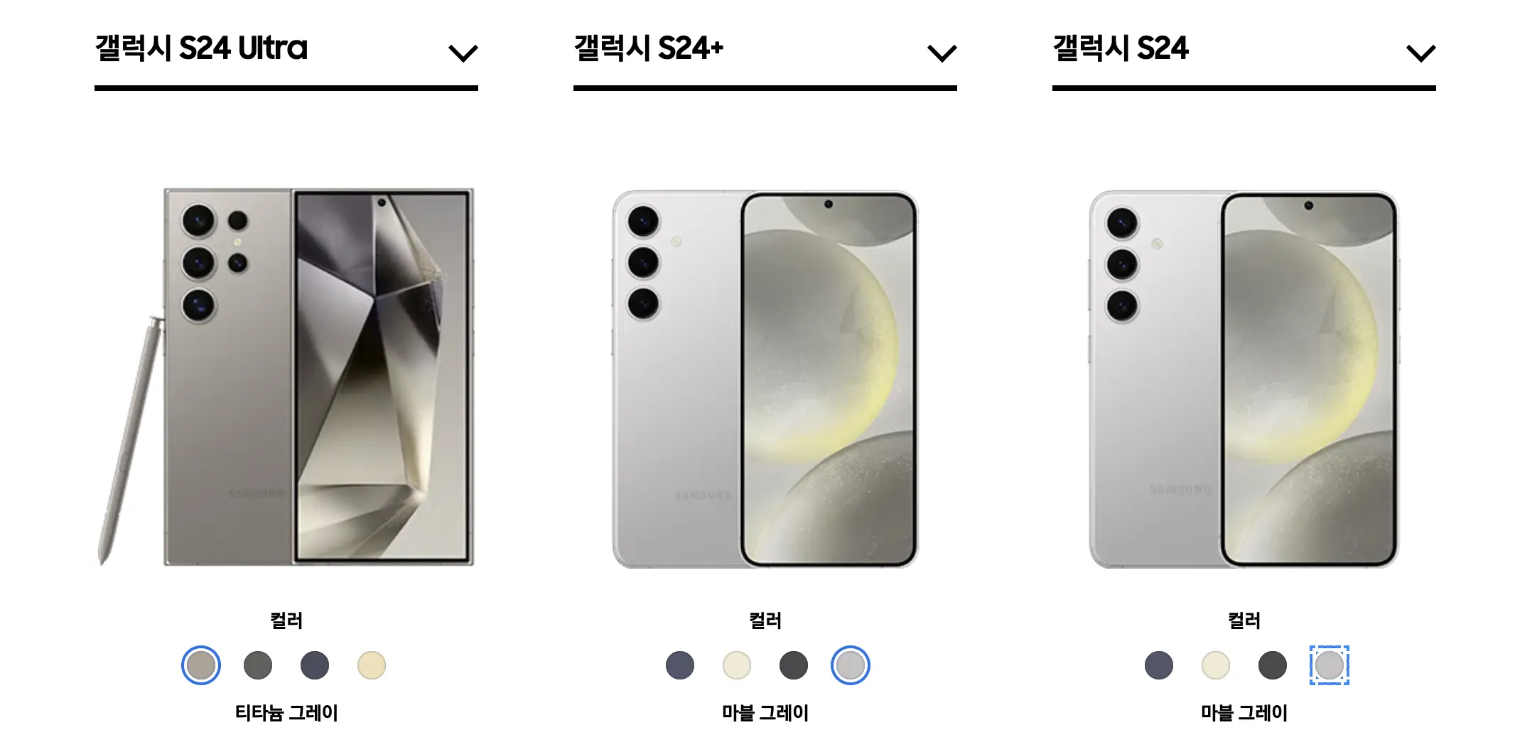 | 구분 | 갤럭시 S24 | 갤럭시 S24 플러스 | 갤럭시 S24 울트라 |