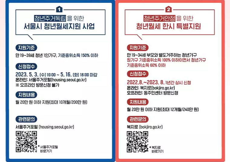 서울시 청년월세와 한시 청년월세 특별지원 차이점 비교