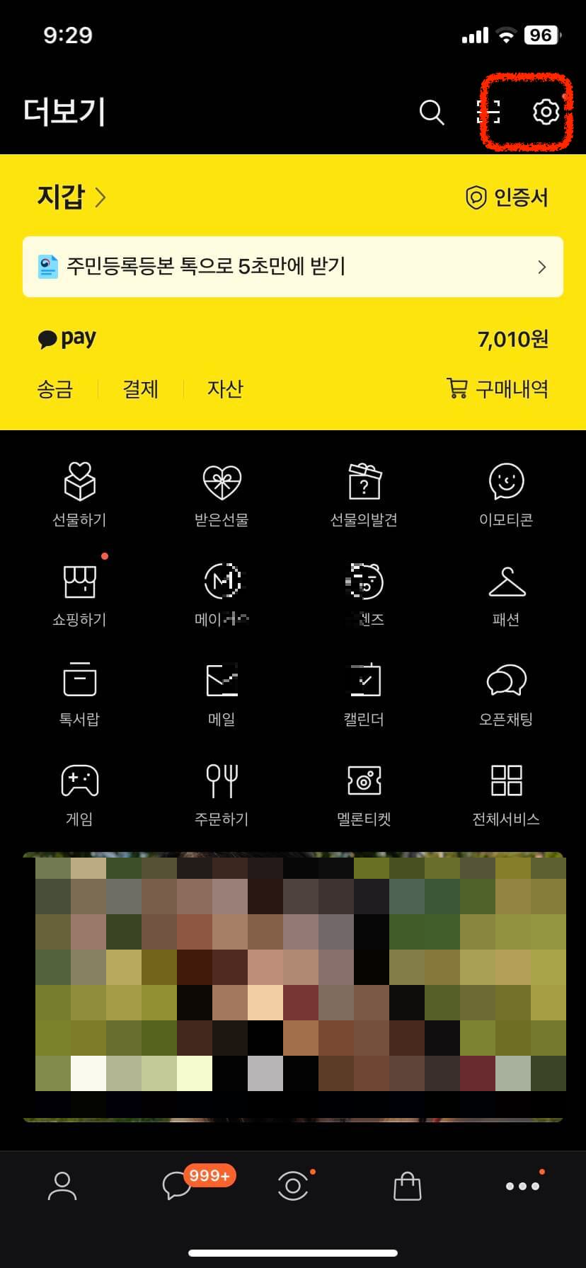 3. 우측 상단 톱니바퀴(설정) 메뉴 선택