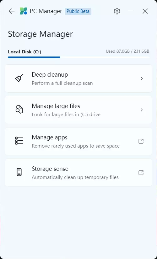 마이크로소프트에서 개발하여 베타 서비스로 무료 배포중인 피씨매니저 (PC Manager) 프로그램입니다.