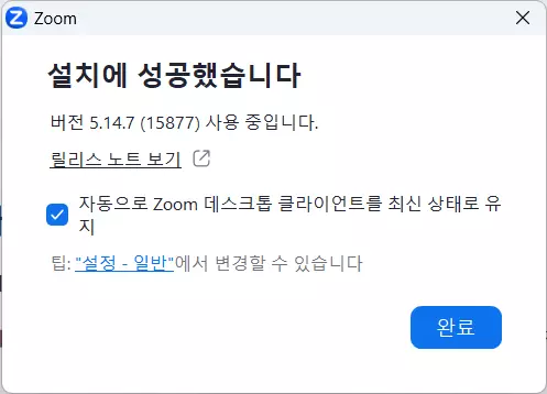 • 다운로드한 클라이언트로 줌 PC버전 설치를 진행합니다.